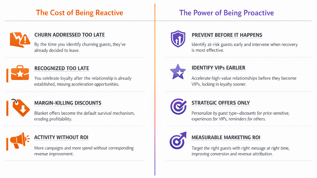 It enables earlier intervention, smarter personalization, fewer wasted discounts, and higher guest lifetime value.